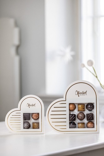Hver chokolade er håndlavet med kærlighed og består af de mest delikate smagskombinationer: cremet nougat, intens saltkaramel, blød flødekaramel og klassisk marcipan.