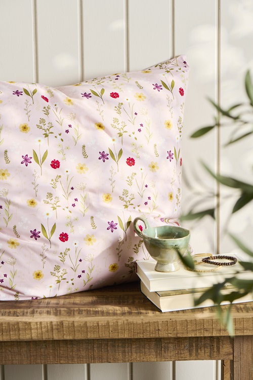 Ib Laursen Pudebetræk rosa med havens blomster 60x60 cm