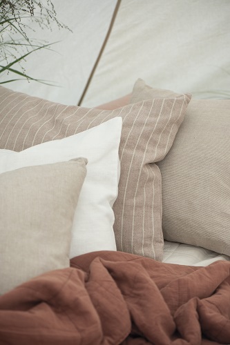 Ib Laursen Pudebetræk malva og beige striber 50x70 cm