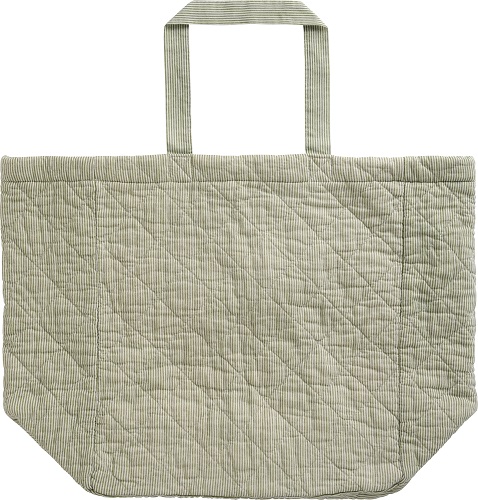 Ib Laursen Taske quiltet hvide og støvgrønne mælkedrengestriber