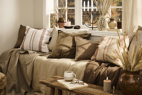 Skønt Ib Laursen - Quilt hørfarvet med korssting i 100 %bomuld. Perfekt til at skabe hygge indenfor, i haven eller på stranden